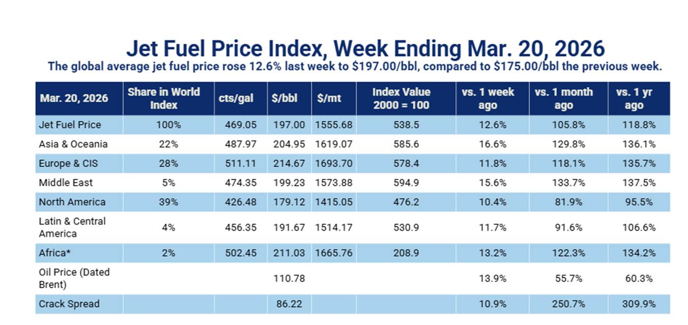 Giá nhiên liệu máy bay đã tăng mạnh, đặc biệt trong bối cảnh xung đột tại Trung Đông chưa có dấu hiệu kết thúc. Chỉ trong ba tuần, giá nhiên liệu máy bay đã hơn gấp đôi, với giá nhiên liệu hàng không bền vững (SAF) tại Mỹ tăng từ 4,69 USD/gallon lên 7,57 USD/gallon. Trong khi đó, giá nhiên liệu truyền thống cũng tăng từ 2,50 USD/gallon lên 4,62 USD/gallon .