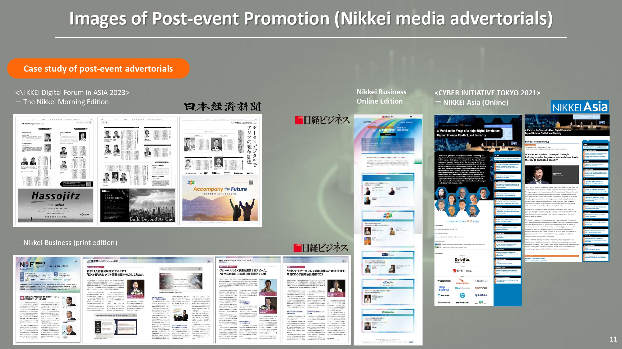 Sau khi diễn đàn kết thúc, hình ảnh và thông điệp của doanh nghiệp tiếp tục được lan tỏa thông qua các bài viết tổng hợp, advertorial và báo cáo hậu sự kiện trên Nikkei Asia, Nikkei Business và ấn bản Nikkei Morning Edition. Tùy theo mức tài trợ, doanh nghiệp có thể xuất hiện trong các bài tổng thuật nội dung phát biểu, hình ảnh diễn giả, logo trong advertorial nhiều trang hoặc quảng cáo báo in, cũng như nội dung lưu trữ phục vụ người xem đăng ký theo dõi sau sự kiện. Đây là giai đoạn giúp kéo dài giá trị truyền thông của việc tài trợ, đặc biệt với các doanh nghiệp hướng tới thị trường Nhật Bản và cộng đồng đầu tư quốc tế.