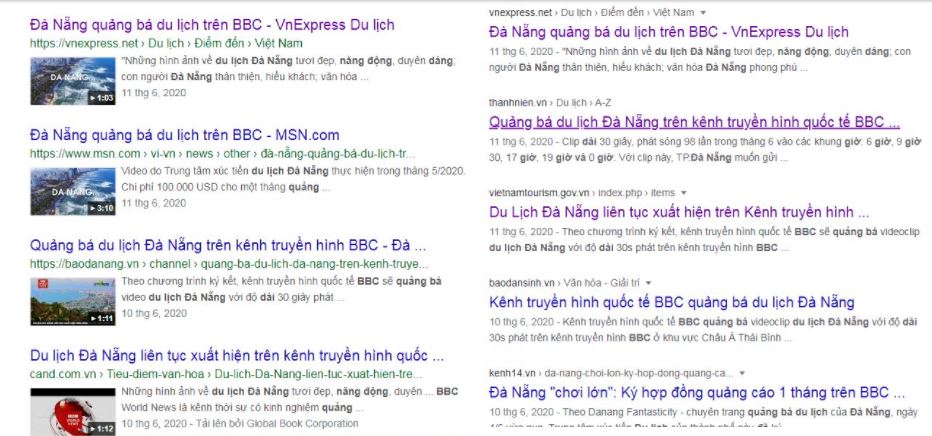 Ngay khi đoạn video được phát sóng trên truyền hình BBC World News đã có tổng cộng đến hơn 80 bài báo trong nước đưa tin về sự kiện với niềm tự hào và đề cao công tác truyền thông quảng bá, giúp nâng cao uy tín của sở du lịch Đà Nẵng. Không những thế còn có rất nhiều bài viết, bình luận tích cực được chia sẻ trên facebook làm lan tỏa thông tin quảng bá du lịch Đà Nẵng trong nước mạnh mẽ.