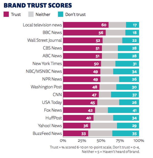 Tại UK, người được khảo sát đánh giá BBC là một kênh có độ tin tưởng cao khi đến 64% đánh giá thang điểm 6-10.